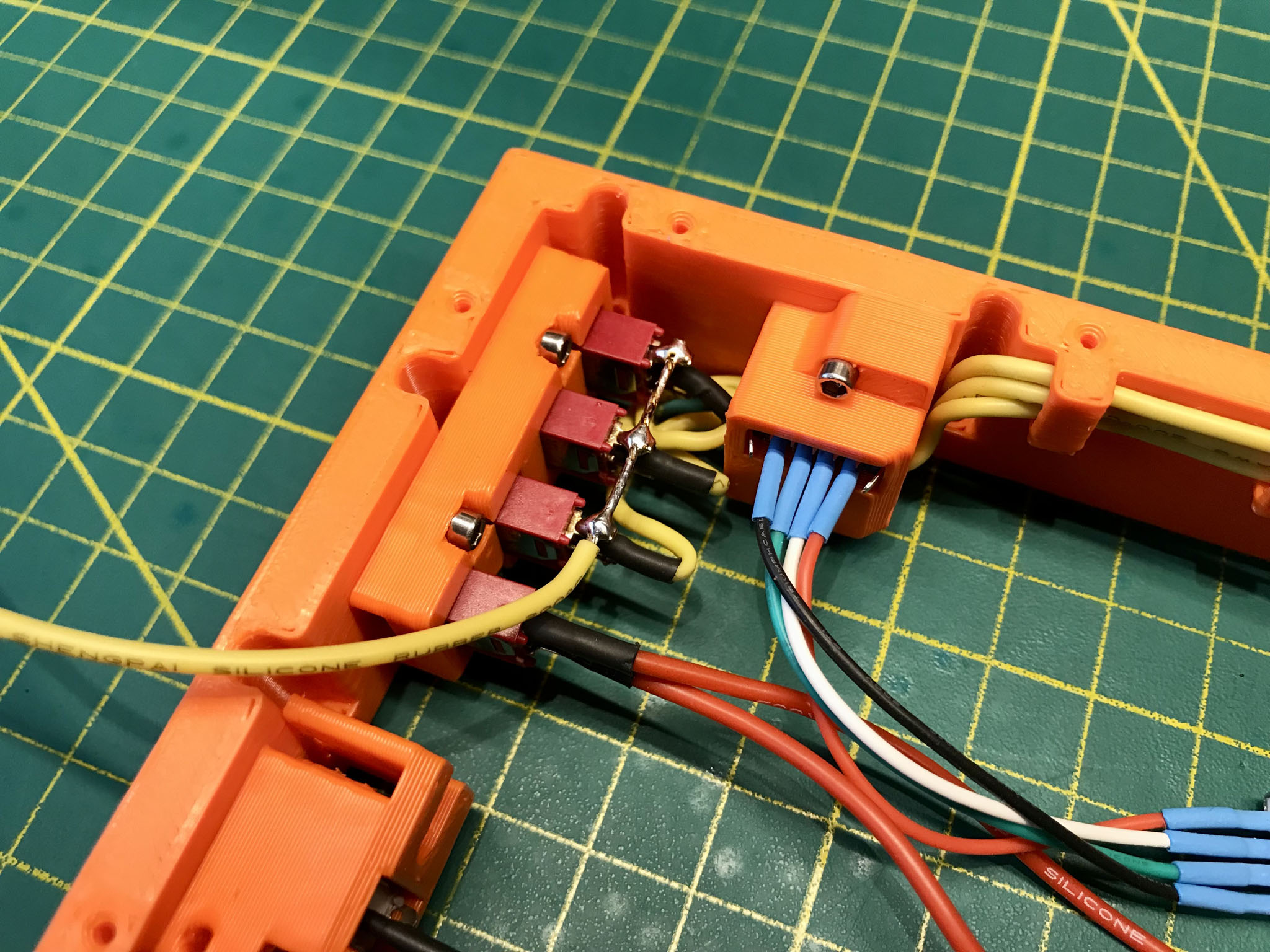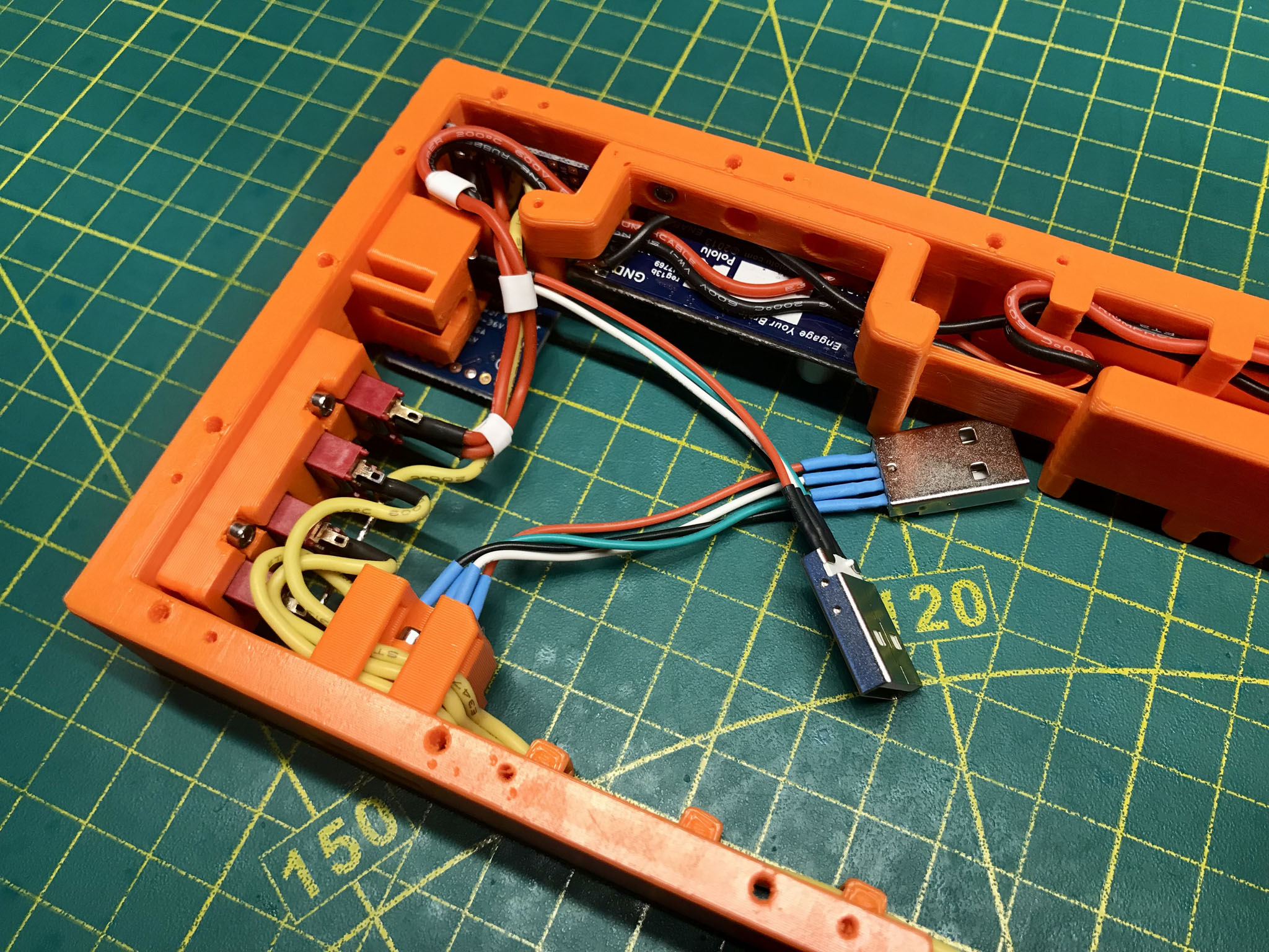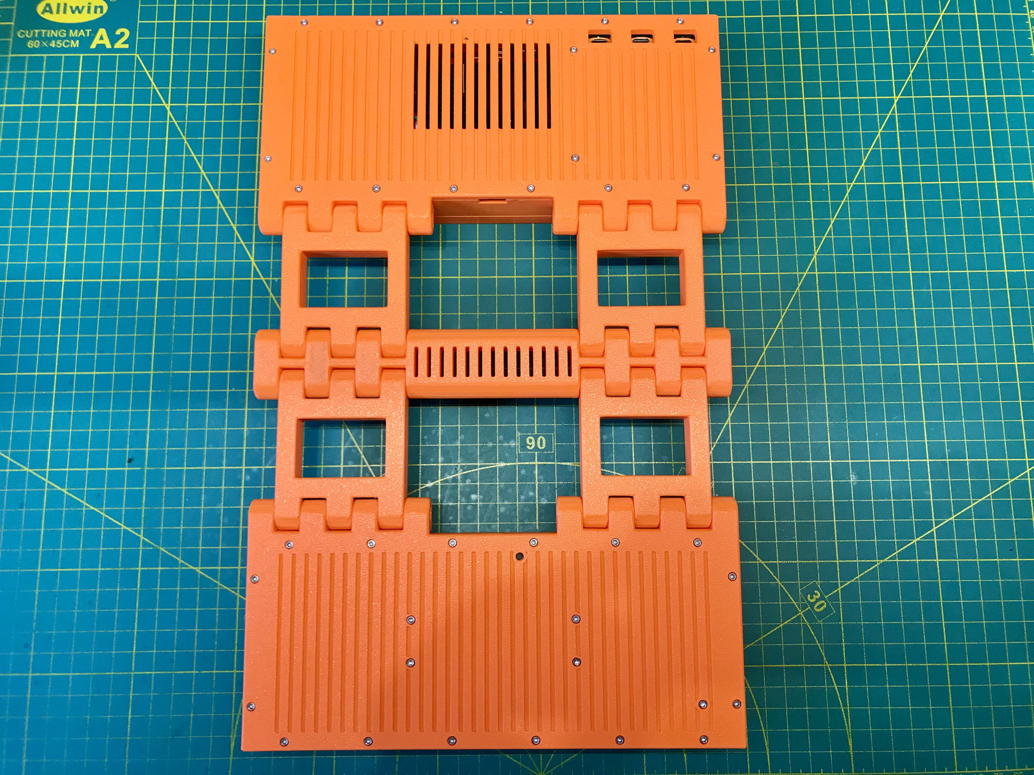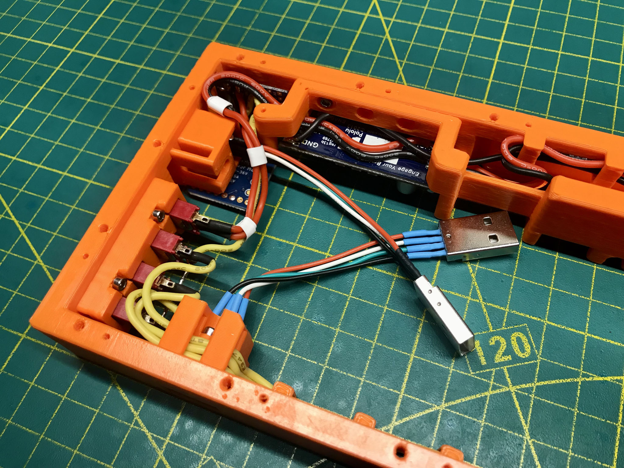 The keyboard is a 5×12 ortholinear layout — 60 keys in a uniform grid with Cherry-compatible mechanical switches and QMK firmware running on a Pro Micro controller. The ortholinear layout takes a day or two to get used to, but once your fingers learn the grid, the consistency is hard to go back from. QMK gives you full control over layers, macros, and key behavior. What makes the design modular is the carrier system: the keyboard connects to the main unit through interchangeable 3D-printed carriers that transform the device into different configurations — a laptop-style Terminal, a flat Cyberdeck, or a convertible Transformer with adjustable viewing angles. All enclosure parts are printed in PLA or ASA and held together with machine screws, so anything that breaks or wears out can be reprinted and replaced in an afternoon.