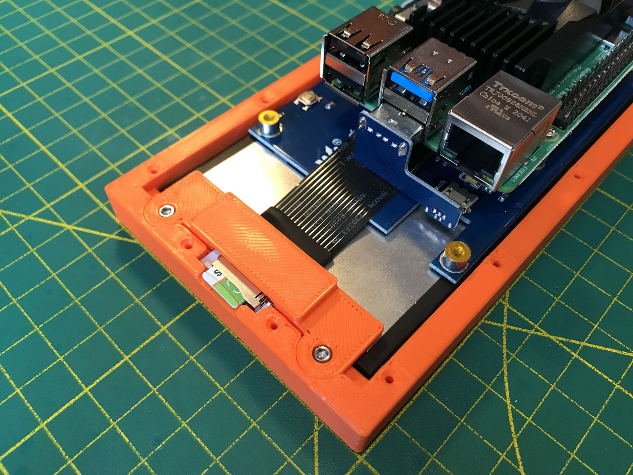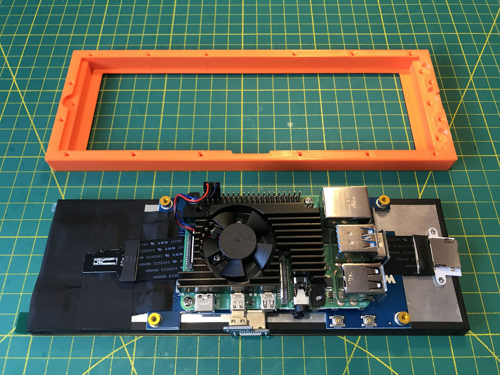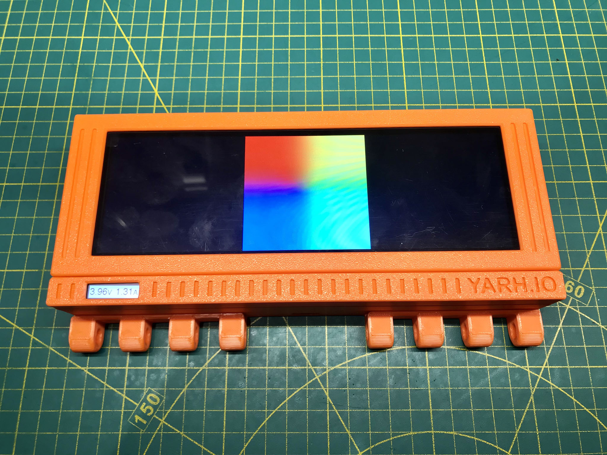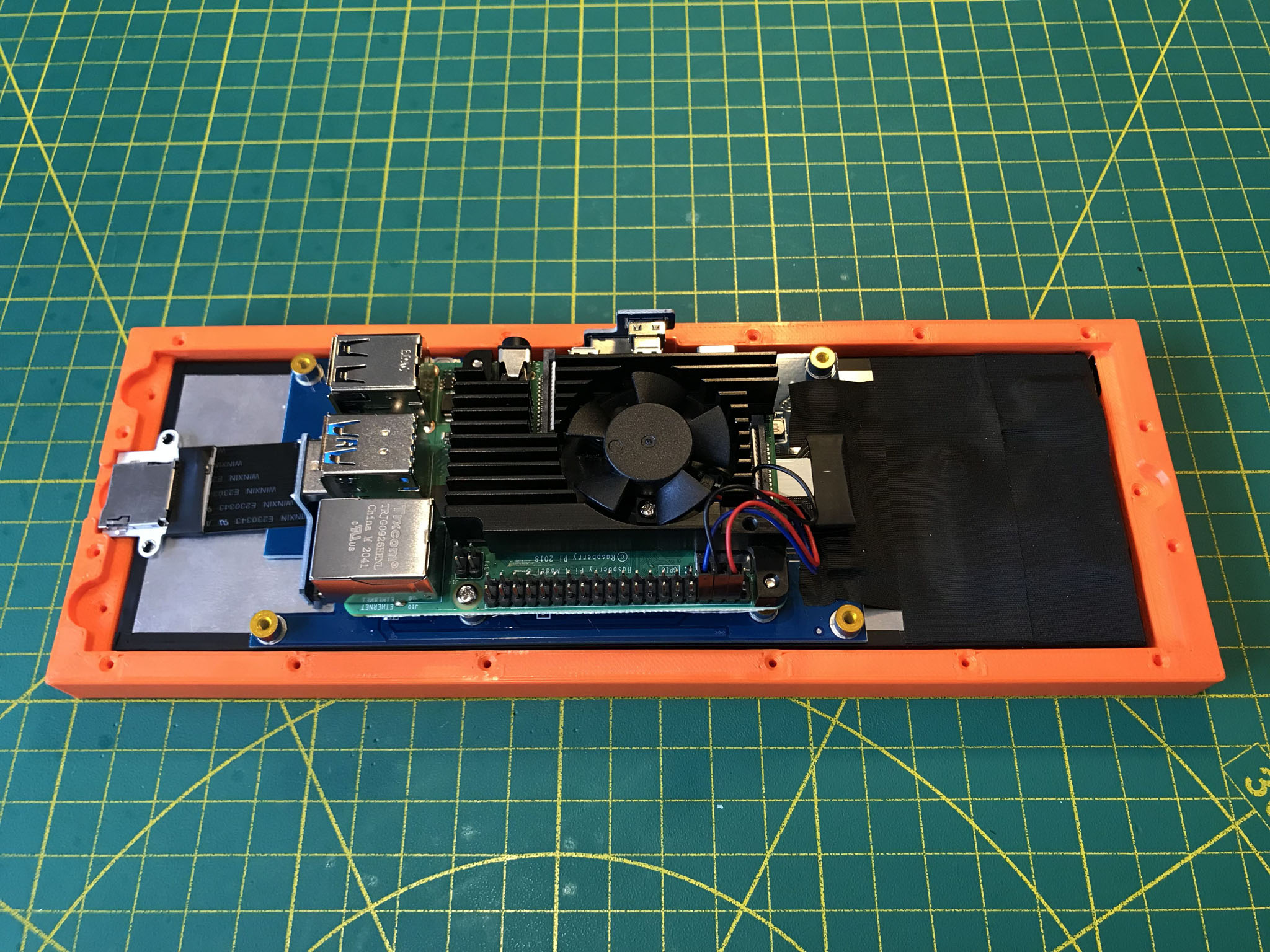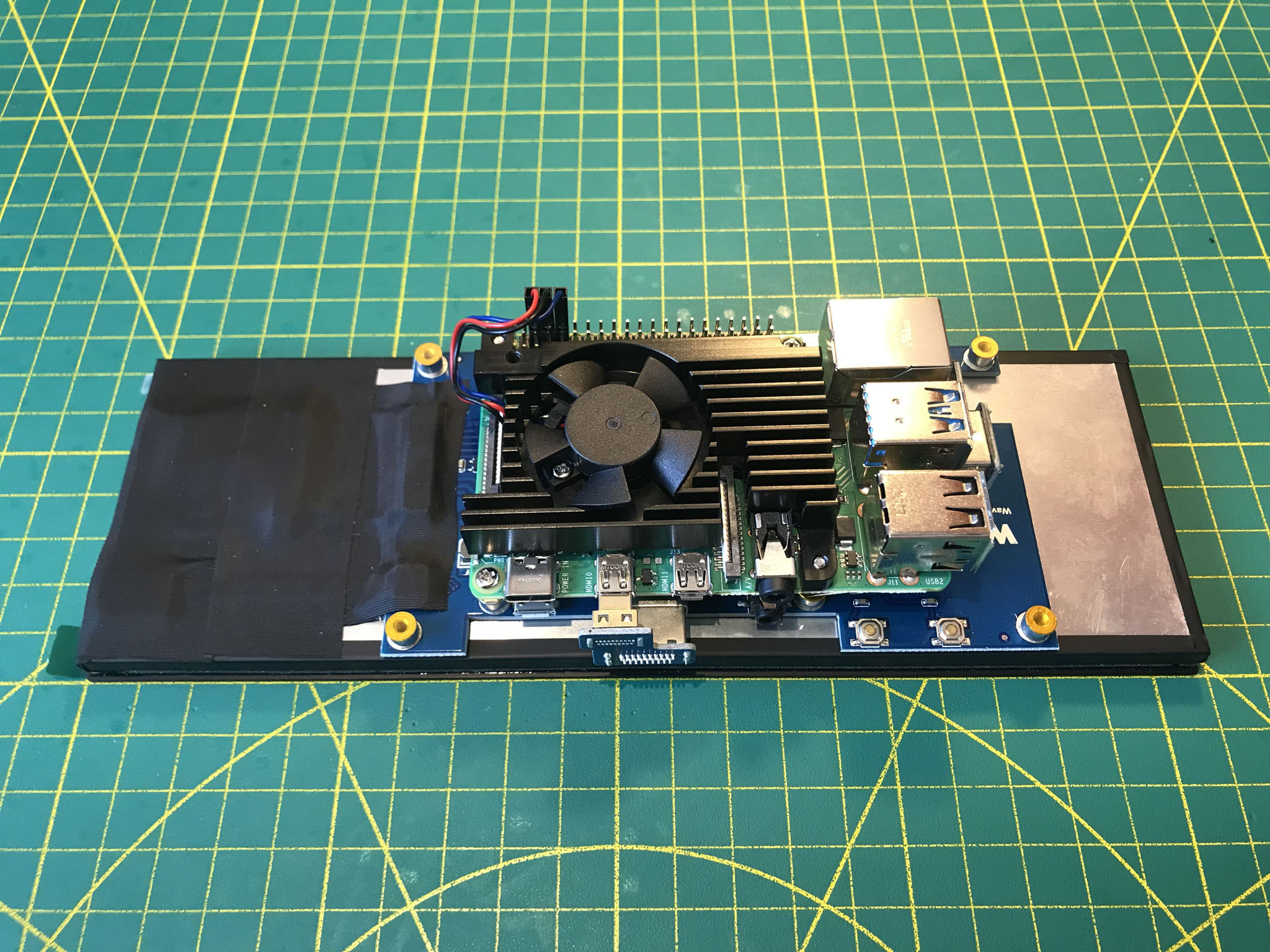 At the heart of THEBRICK sits a Raspberry Pi 4B — more than enough compute for development, browsing, and media on the go. A full aluminum heatsink covers the SoC, and a GPIO-controlled fan kicks in at 60°C to keep things cool inside the enclosed case, even during sustained workloads. The primary display is a Waveshare 7.9-inch IPS panel running at 400×1280 with a toughened glass cover that can take a beating. The panel ships in portrait orientation and gets rotated to landscape through config.txt — an unconventional aspect ratio that actually works beautifully for terminal work and code editors. With 170° viewing angles, the screen stays readable no matter how you're holding it or where you're sitting.