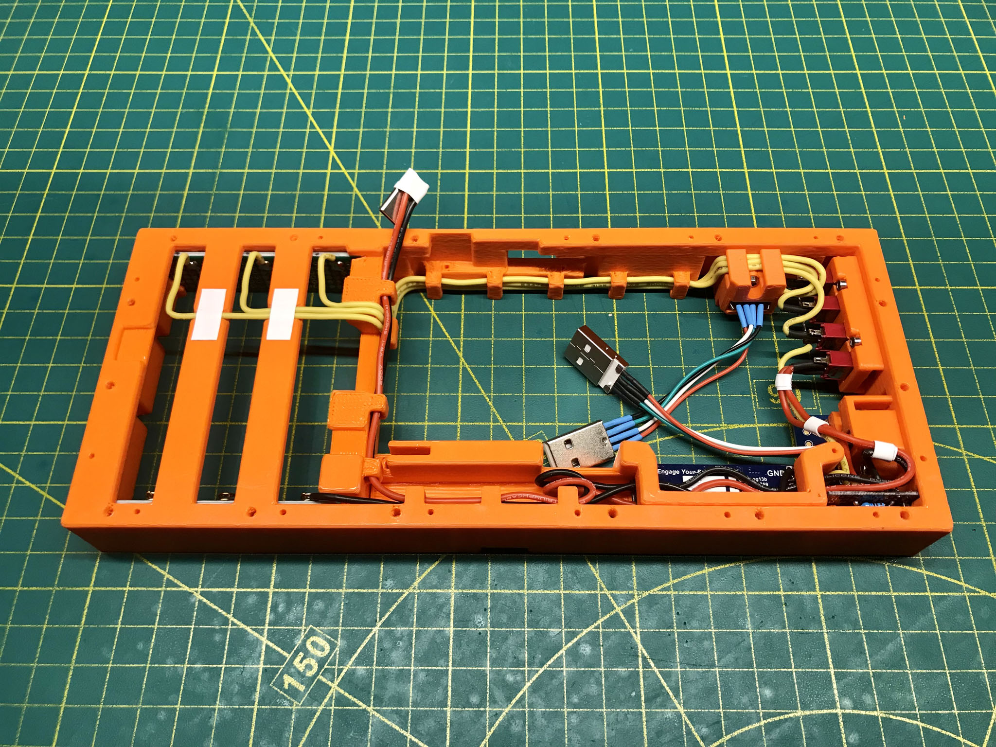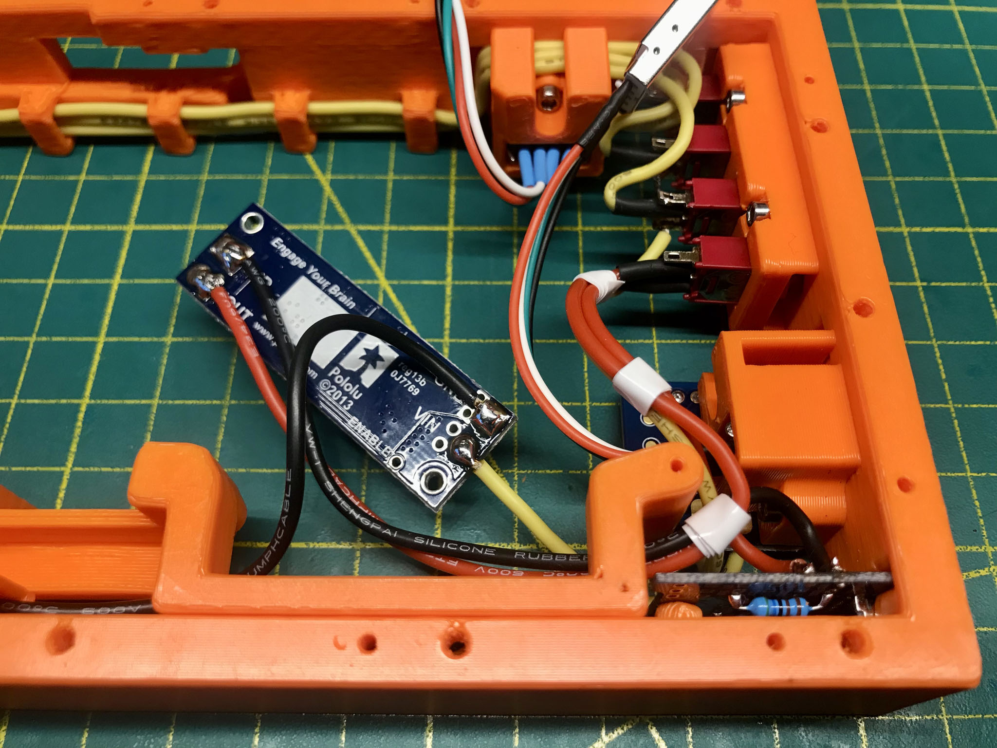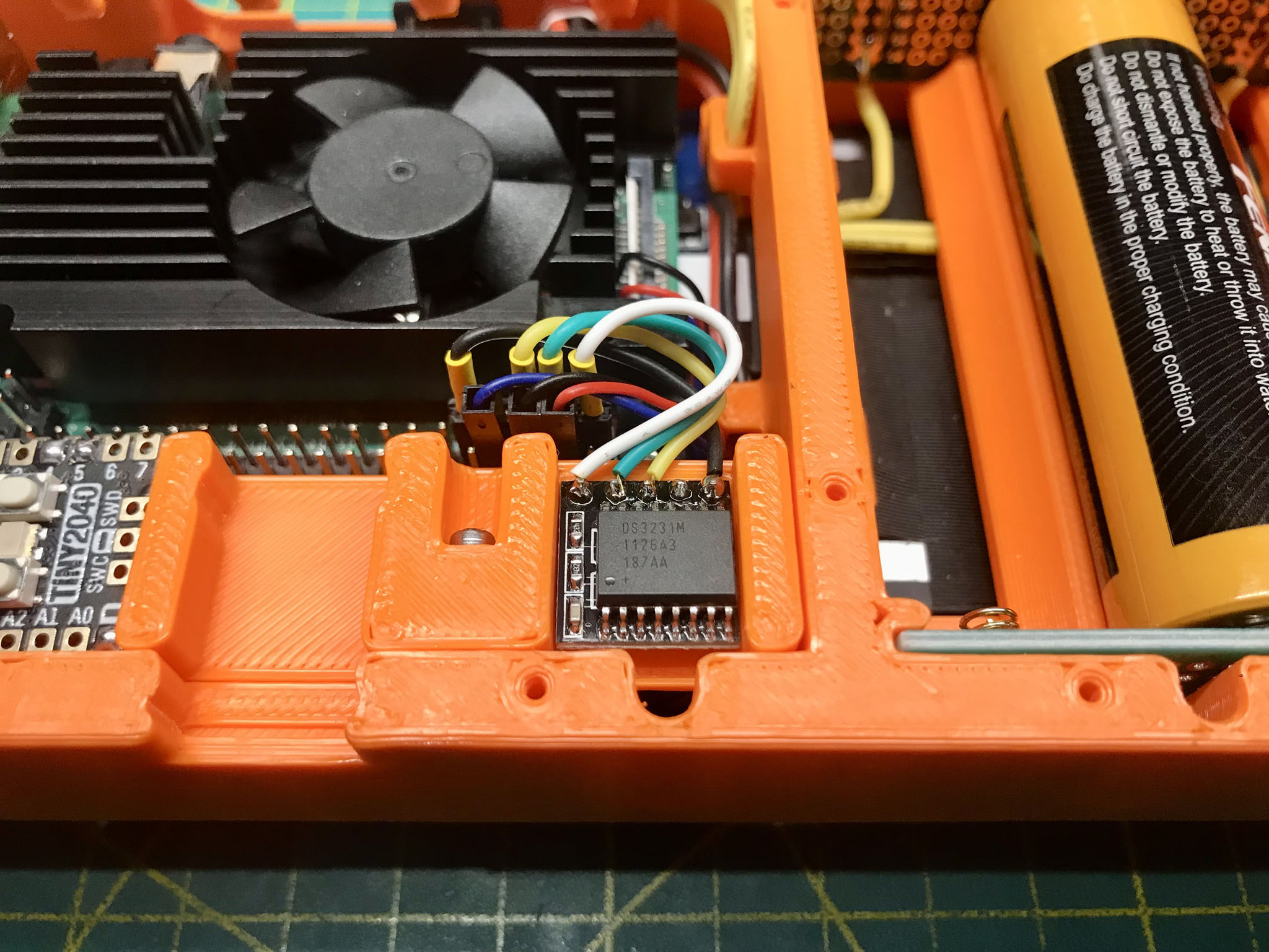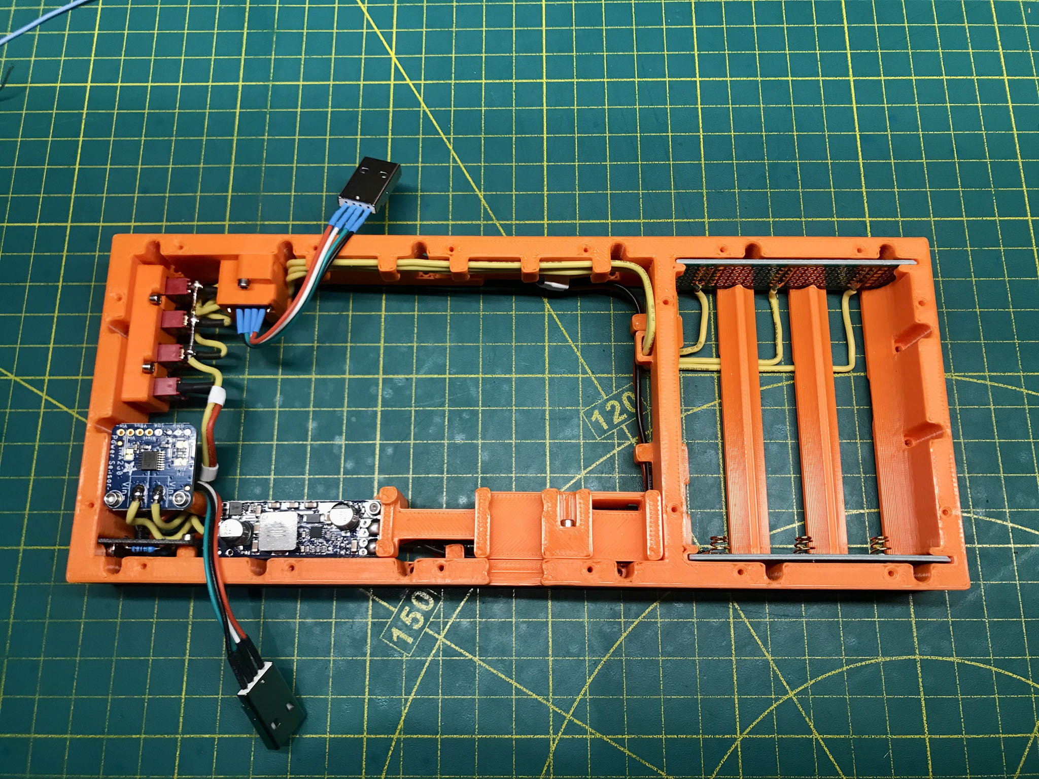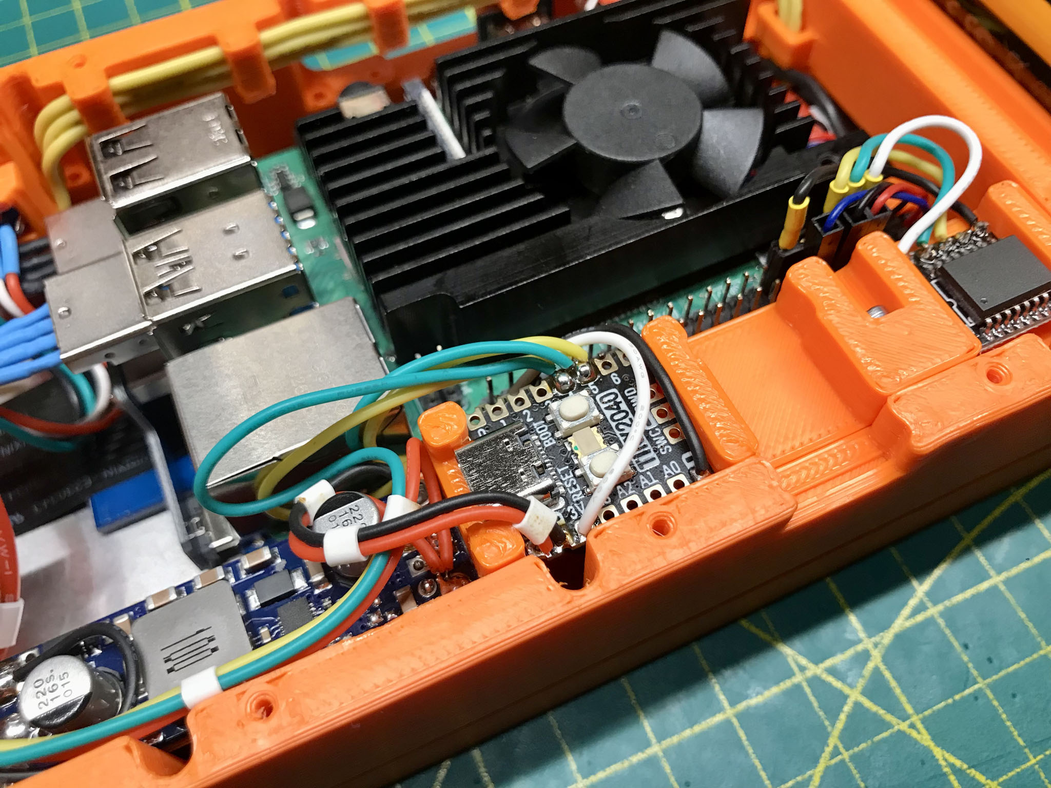 Power was one of the hardest problems to solve well. THEBRICK carries three Fenix ARB-L21-5000U 21700 lithium cells — real, high-quality batteries with built-in USB-C charging. A Pololu U3V50F5 step-up regulator converts the battery voltage to a stable 5V output, working reliably from inputs as low as 2.9V, which means the Pi keeps running until the cells are genuinely depleted. Each battery has its own ON/OFF toggle switch on the right panel and a dedicated USB-C charging port on the rear. You can run on a single cell or engage multiple for extended sessions. Plug in a charger while the device is running and it effectively becomes a UPS — no interruption, no shutdown, just keep working.
