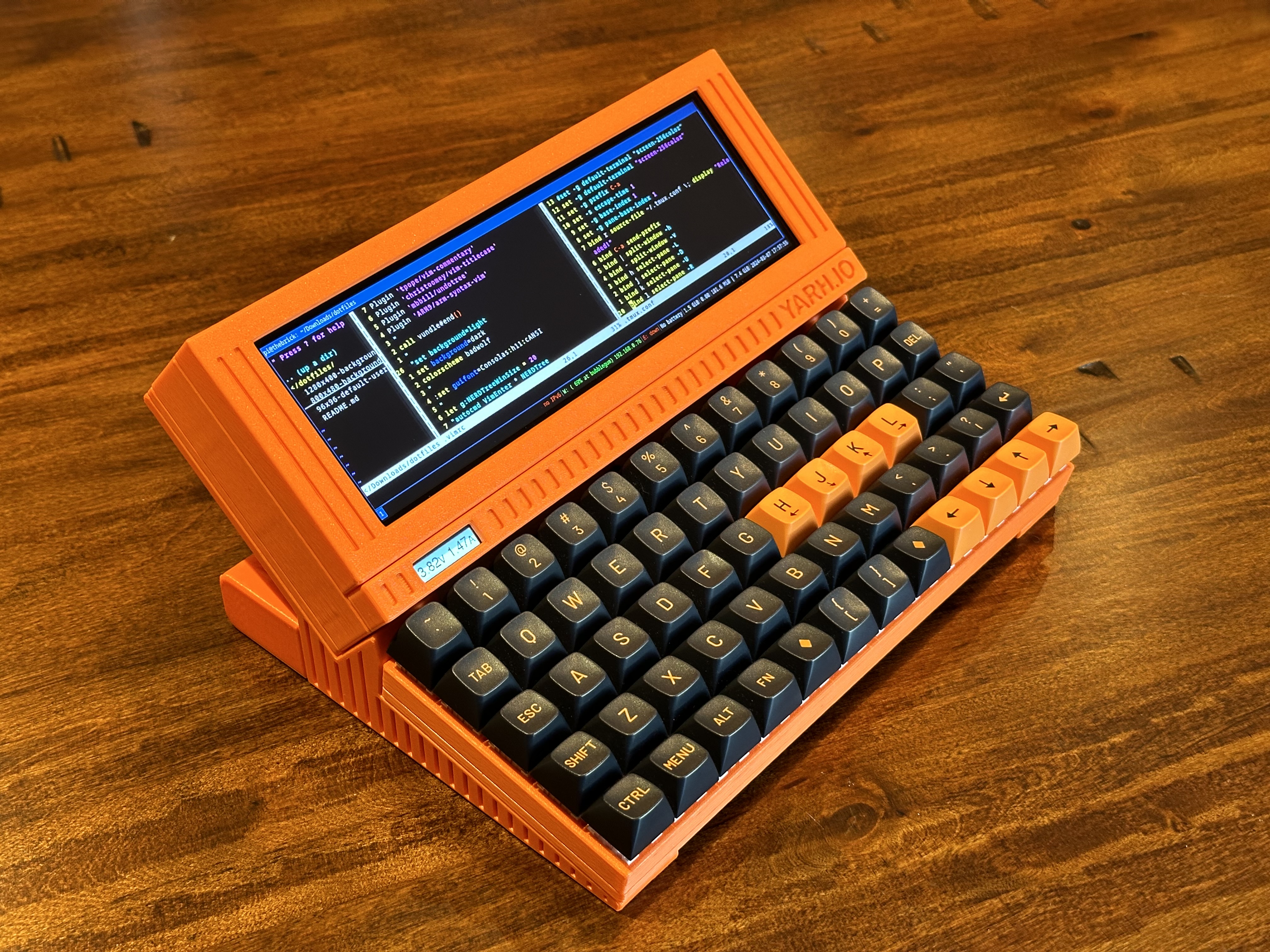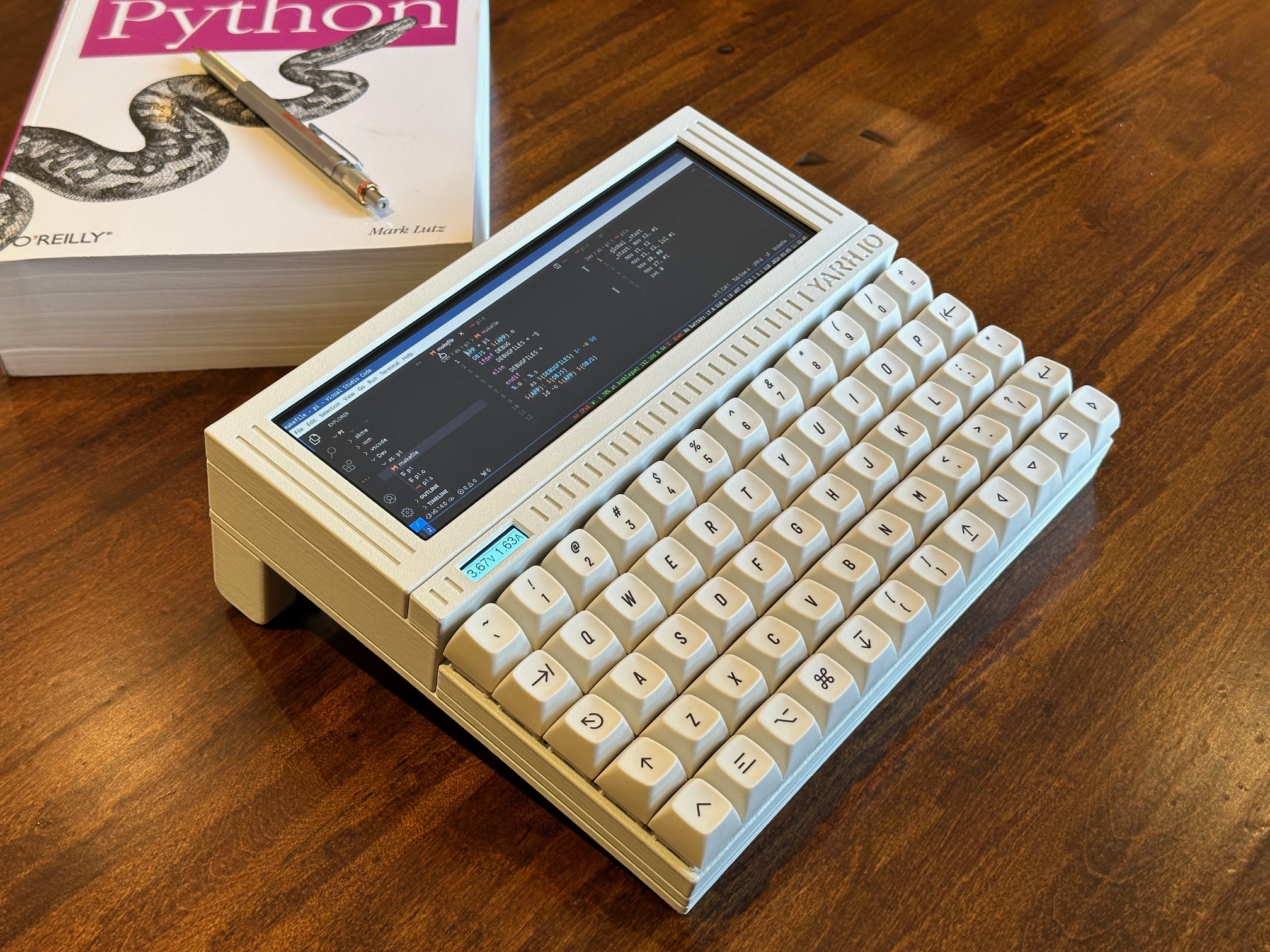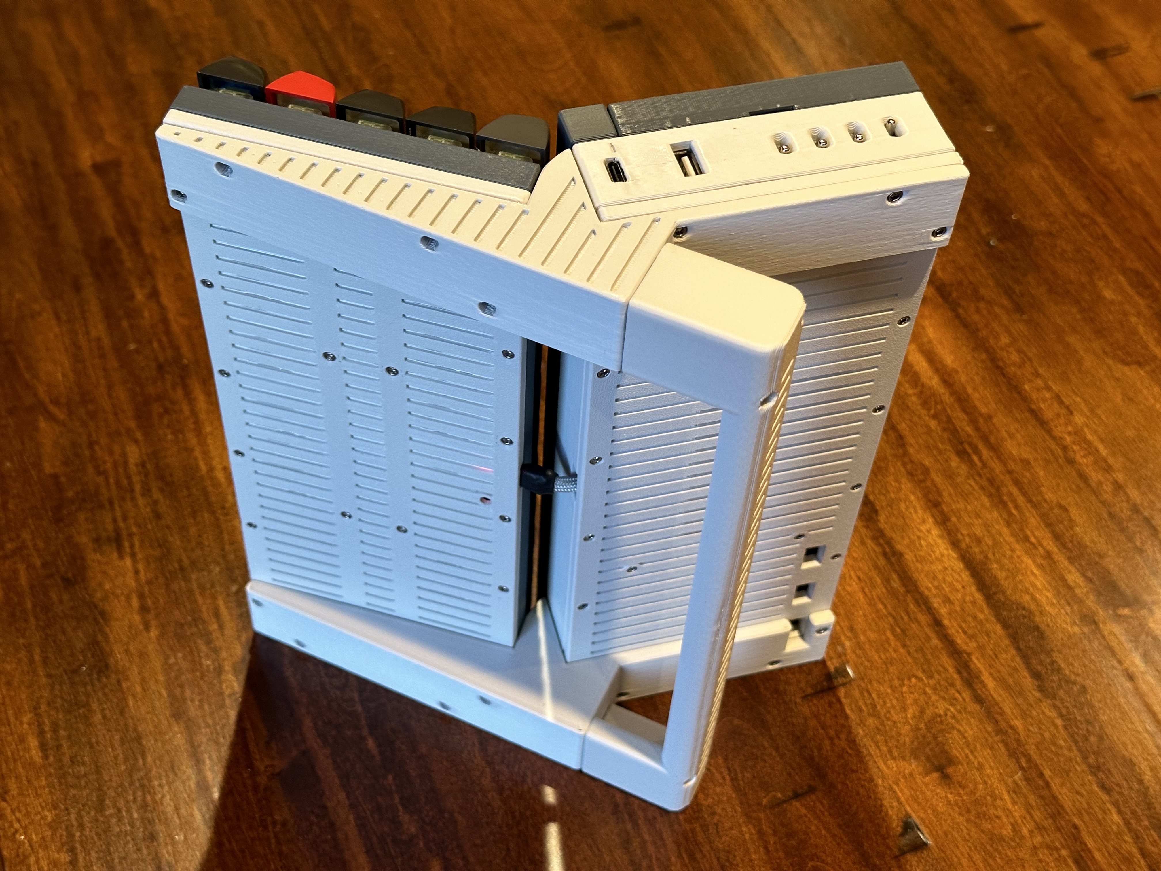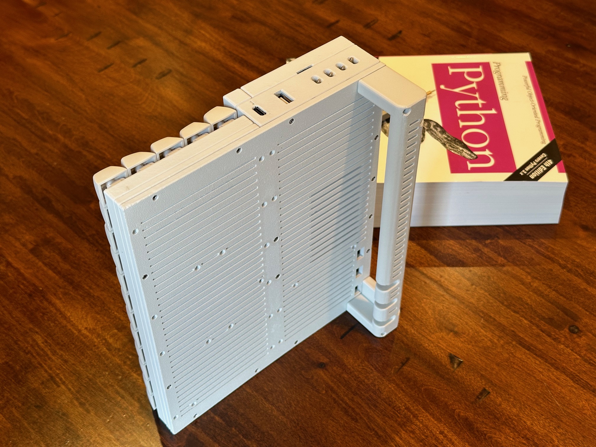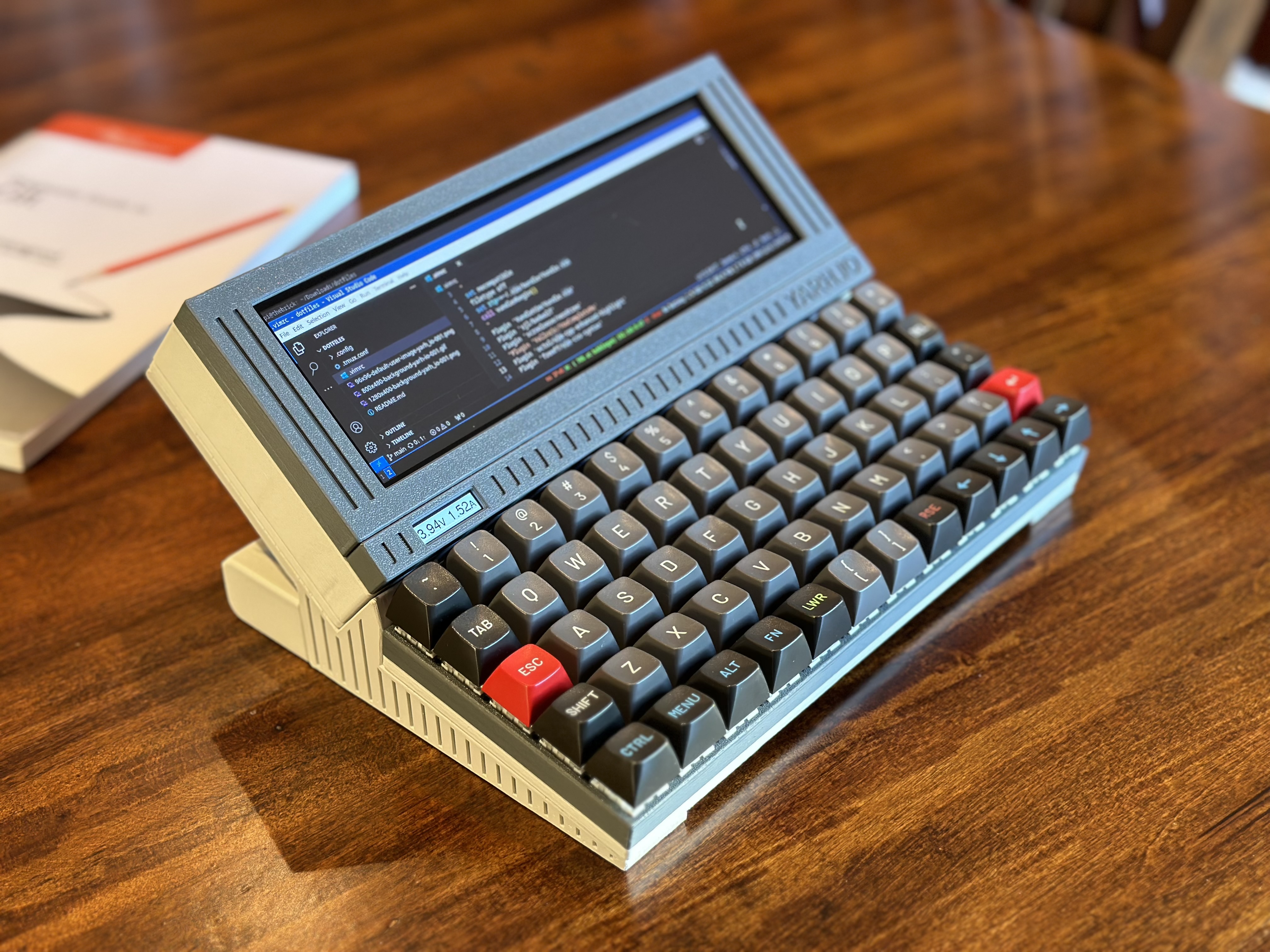 THEBRICK is a portable cyberdeck built around the Raspberry Pi 4B — a machine designed for people who want a real computer they can carry, open, and understand. It pairs a custom ortholinear mechanical keyboard with a 7.9-inch IPS display inside a fully 3D-printed enclosure, and runs a full Linux desktop with nothing locked down. Every part is accessible, every component replaceable. Three swappable 21700 batteries give it the kind of runtime that lets you actually work untethered — not just demo for five minutes. The whole point is a device you own completely: no cloud dependency, no sealed case, no planned obsolescence. Just a solid, repairable, genuinely portable Linux workstation that fits in a bag and survives daily use.