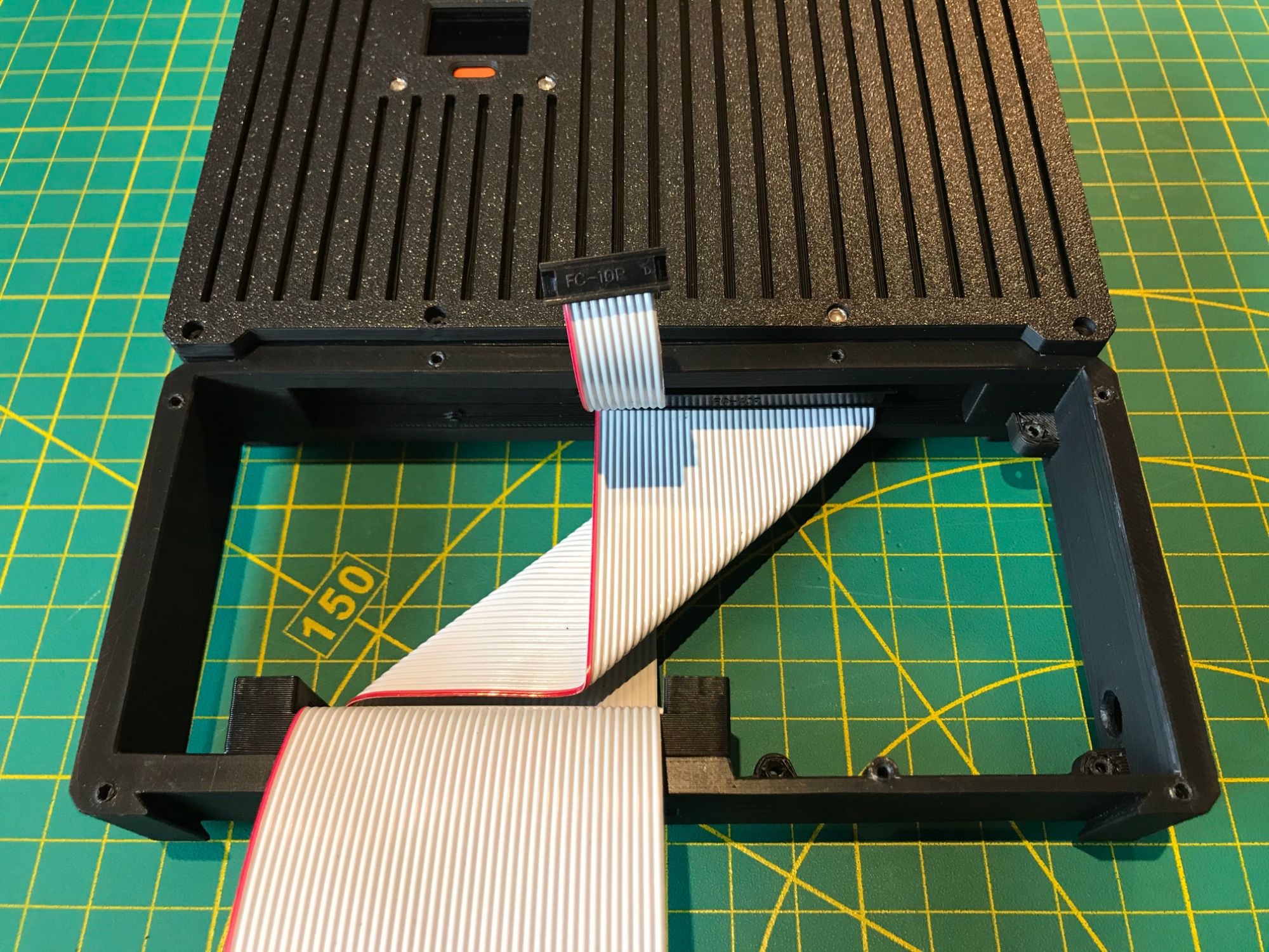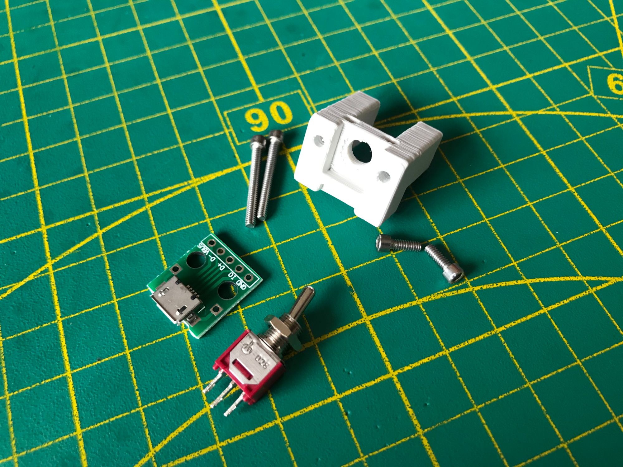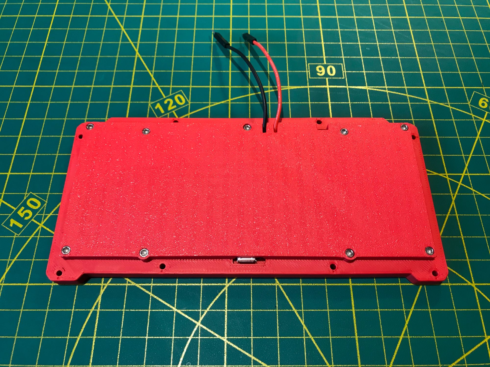 No snap-fit or glued joints. Every panel is fastened with #2-56 stainless steel socket cap screws — 1/4", 3/8", 1/2", and 3/4" lengths throughout. The device can be fully disassembled and reassembled with a single hex driver, and the screws tolerate repeated cycles without stripping. Rubber bumpers on the base protect surfaces and prevent sliding. All housing parts are 3D-printed in PLA, ABS, or ASA depending on the required strength and heat tolerance.
