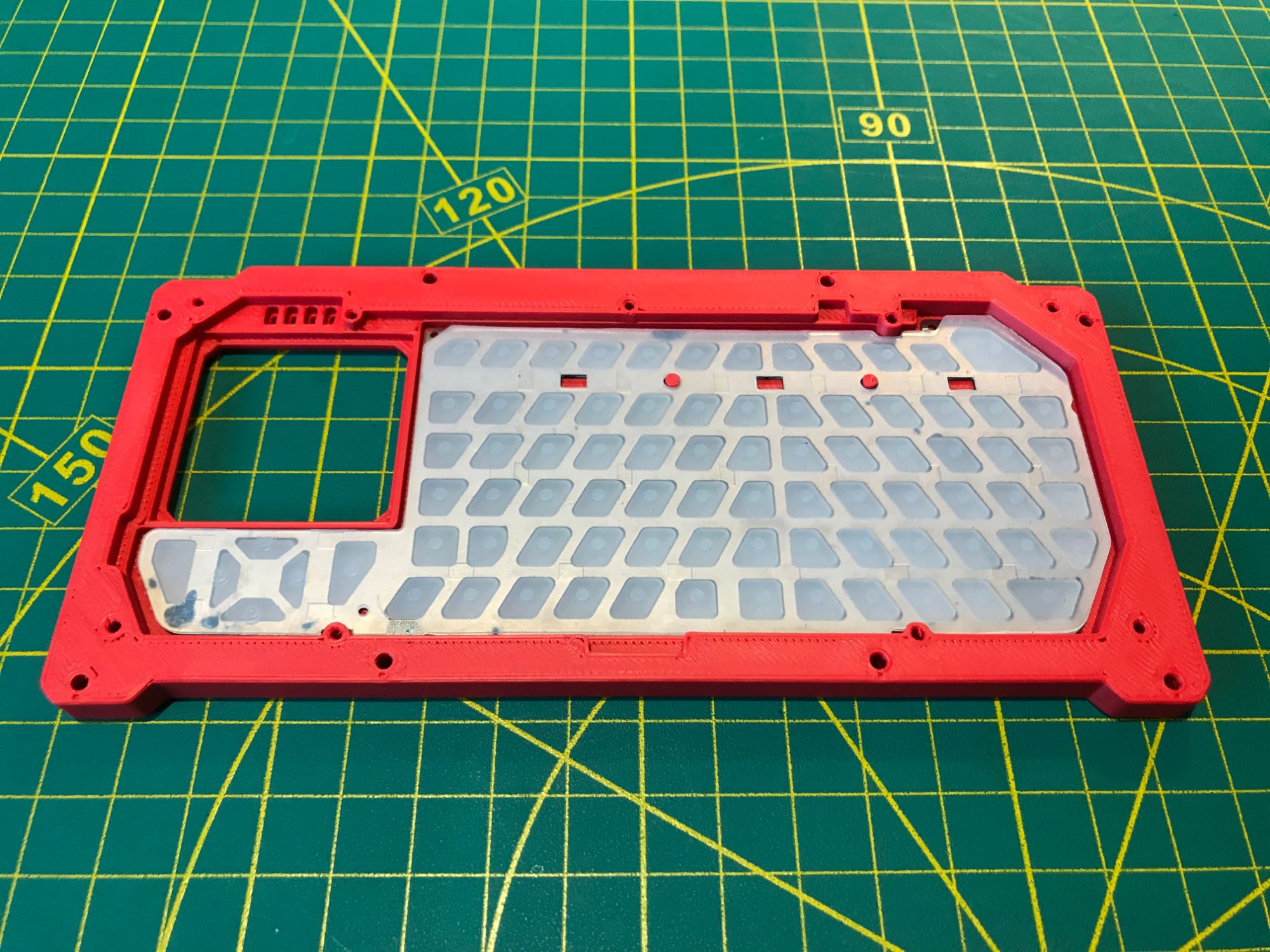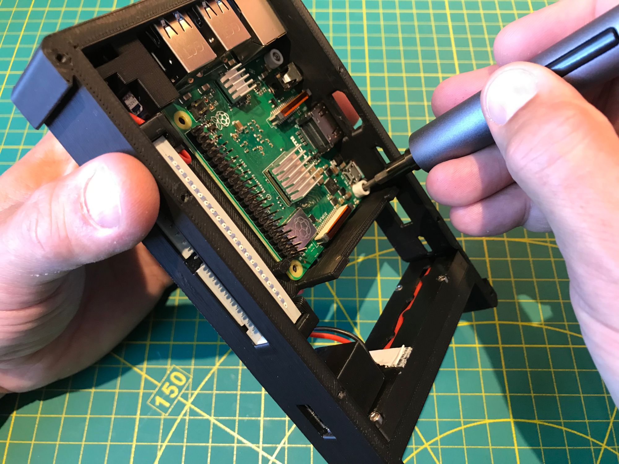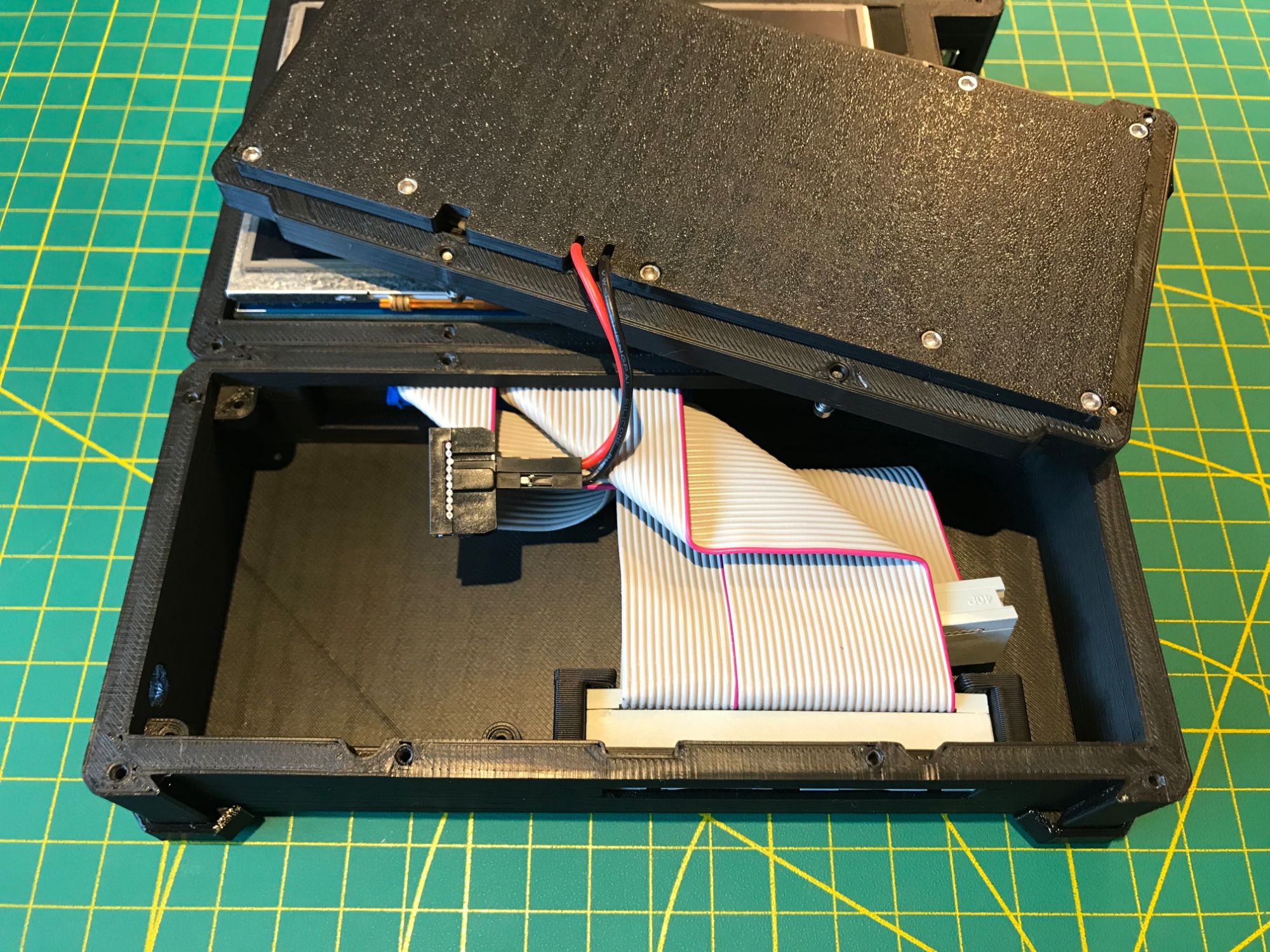 No snap-fit or glued joints. Every panel is fastened with #2-56 stainless steel socket cap screws — 1/4", 3/8", 1/2", and 3/4" lengths throughout. The device can be fully disassembled and reassembled with a single hex driver, and the screws tolerate repeated cycles without stripping. Rubber bumpers on the base protect surfaces and prevent sliding. All housing parts are 3D-printed in PLA, ABS, or ASA depending on the required strength and heat tolerance.