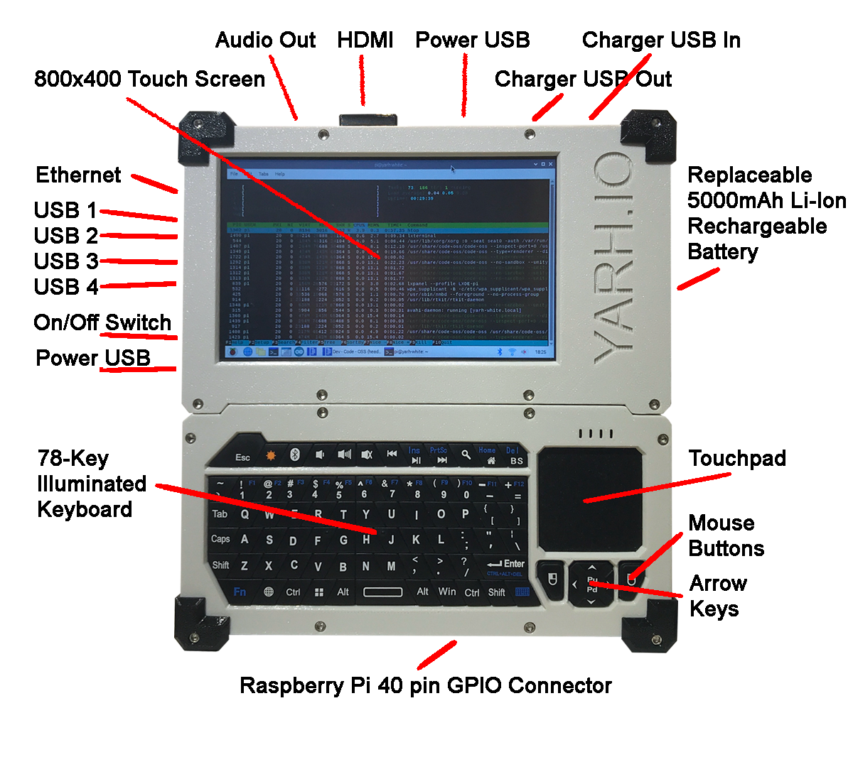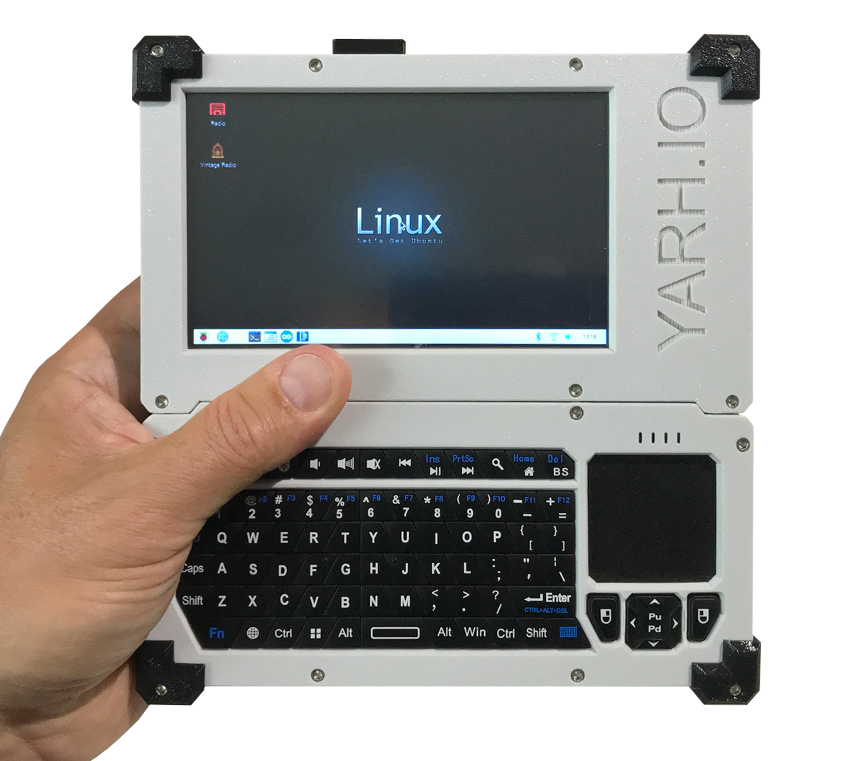 The first YARH.IO handheld — a modular Raspberry Pi 3B+ device built for hackability. Every component is accessible and replaceable. Exposed GPIO, I2C bus, and a fully open design make it a platform for experimentation, not just a finished product.